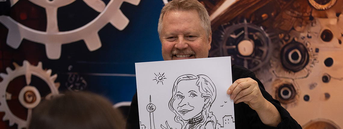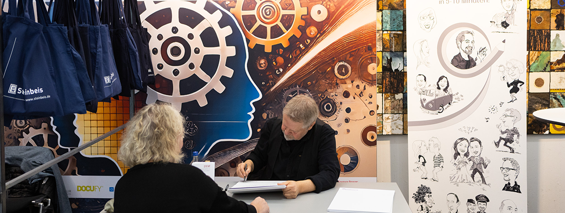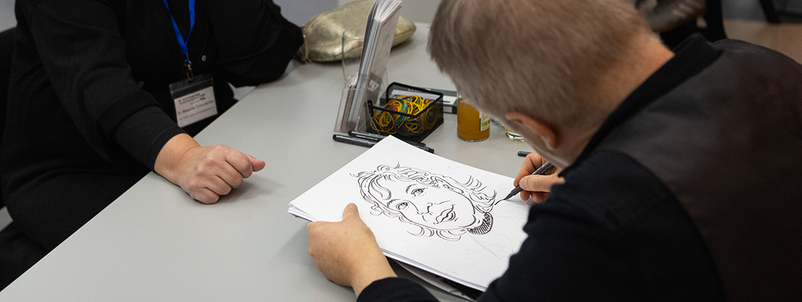 Ein echter Publikumsliebling war der Live-Schnellzeichner, der zwei Tage lang originelle Karikaturen zeichnete.