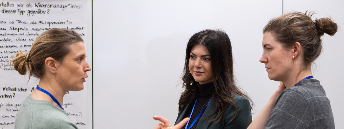 - Im Workshop „Widerstand gegen Wissensmanagement“ wurde der menschliche Faktor in Veränderungsprozessen beleuchtet: Wie lassen sich verschiedene Persönlichkeitstypen gezielt einbinden, damit Wissen im Unternehmen wirklich fließt?